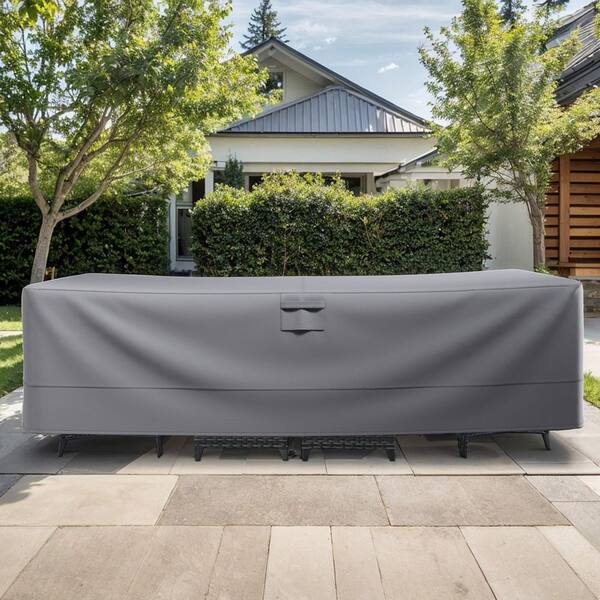 Qovers 90 in. L x 68 in. W x 28 in. H Gray General Purpose Patio Table and Chair Set Cover