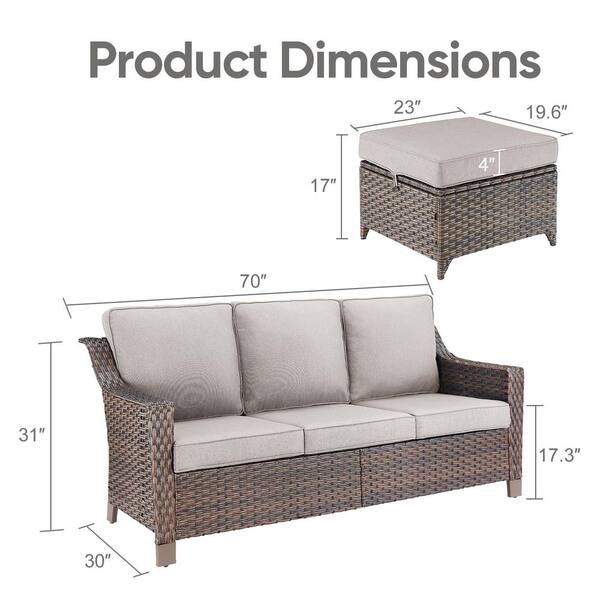 SlideArm 3-Piece Brown Wicker Outdoor 3-Seat Sectional Couch Sofa with Beige Cushions and Ottomans