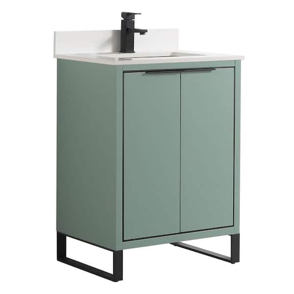 Opulence 24 in. W x 18 in. D x 33.5 in H. Bath Vanity in Mint Green with White Single sink Top