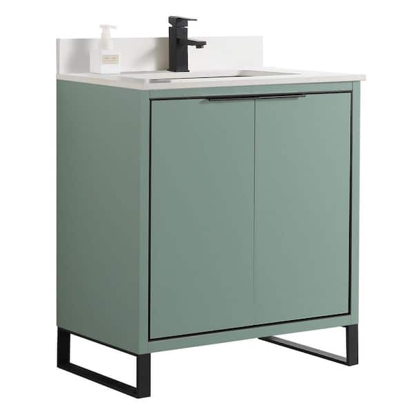 Opulence 30 in. W x 18 in. D x 33.5 in. H Bath Vanity in Mint Green with White Single sink Top