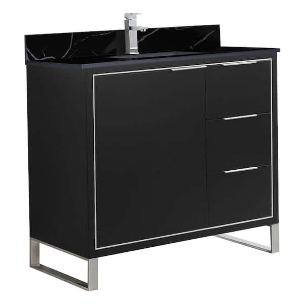 Opulence 36 in. W x 18 in. D x 33.5 in. H Bath Vanity in Black Matte with Black Marble Single sink Top