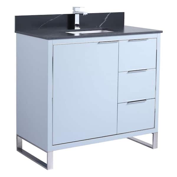 Opulence 36 in. W x 18 in. D x 33.5 in H. Bath Vanity in Pastel Blue with Black Marble Single sink Top