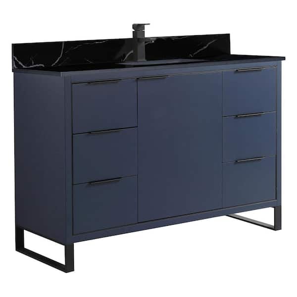 Opulence 48 in. W x 18 in. D x 33.5 in. H Single Sink Bath Vanity in Navy Blue with Black Marble Top