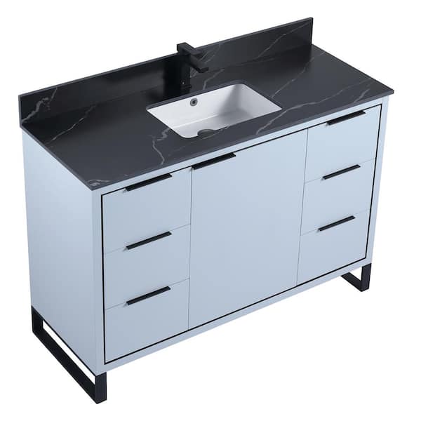 Opulence 48 in. W x 18 in. D x 33.5 in. H Single Sink Bath Vanity in Pastel Blue with Black Marble Top