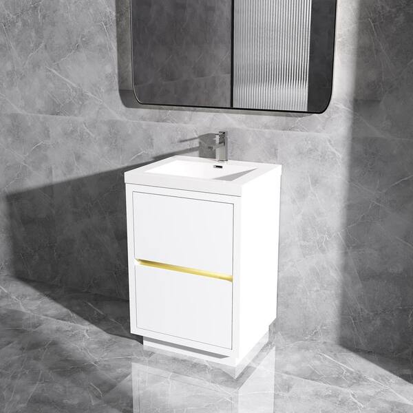 24 in. Freestanding Bath Vanity in White with Single Solid Surface Sink Top in White