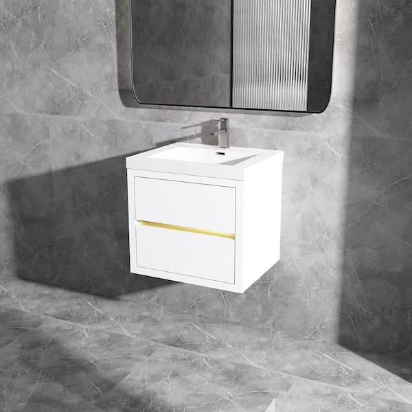 24 in. Wall-Mounted Floating Bath Vanity in White with Single Solid Surface Sink Top in White