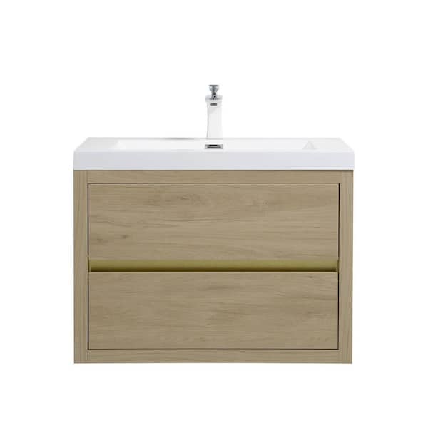30 in. Wall-Mounted Floating Bath Vanity in Natural Oak with Single Solid Surface Sink Top in White