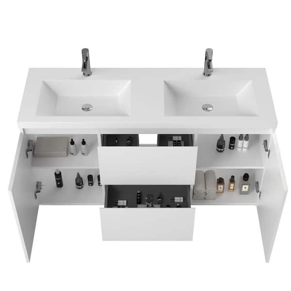 60 in. W x 20 in. D x 33 in. H Double Freestanding Vanity in Glossy White with Solid Surface Sink Top in White