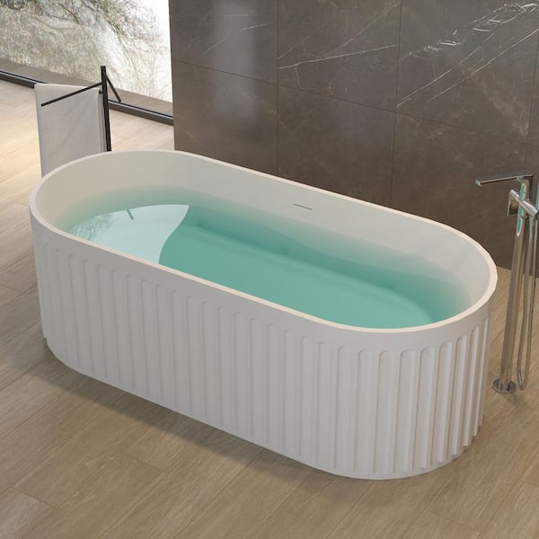 67 in. x 29.5 in. Freestanding Soaking Solid Surface Bathtub with Center Drain in Matte White