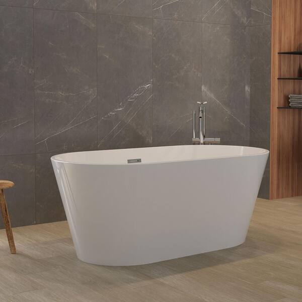 67 in. x 31.1 in. Acrylic Freestanding Contemporary Soaking Bathtub with Overflow and Drain in Gloss White