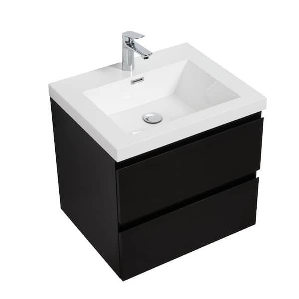 Alice 24 in. W x 20 in. D x 22 in. H Single Floating Bathroom Vanity in Black with Solid Surface Sink Top in White