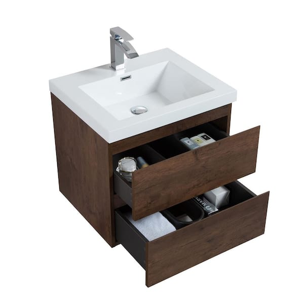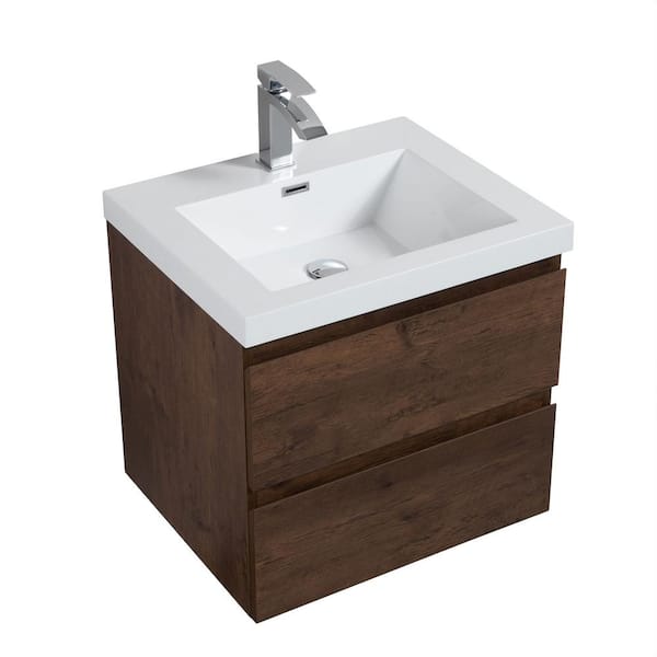 Alice 24 in. W x 20 in. D x 22 in. H Single Floating Vanity in Rosewood with Solid Surface Sink Top in White