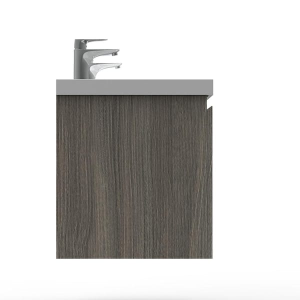 Alice 60 in. W x 20 in. D x 22 in. H Floating Bathroom Vanity in Ash Grey with Double Solid Surface Sink Top in White