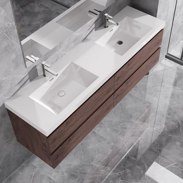 Alice 72 in. W x 20 in. D x 22 in. H Double Floating Vanity in Rosewood with Solid Surface Sink Top in White