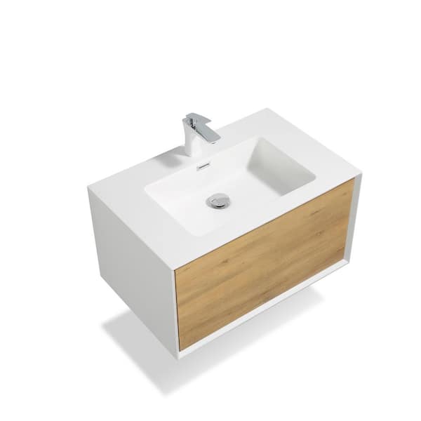 Furla 30 in. W x 19 in. W x 16.7 in. H Single Bath Vanity with White Solid Surface Top in White