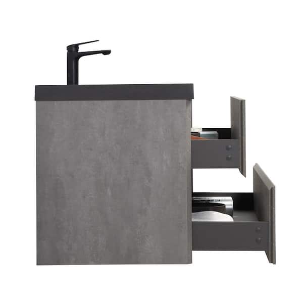 Lodi 36 in. W x 20 in. D x 16 in. H Single Floating Bathroom Vanity with Black Quartz Sand Top in Grey Assembled