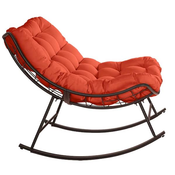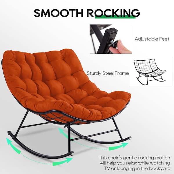 Orange Oversized Rocking Chair Indoor Papasan Chair Soft Cushioned Recliner Rocker Ergonomic Lounge Chair