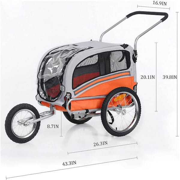 Orange Pet Bicycle Trailer and Jogger Travel Carrier Suitable for Small and Medium Dogs Folding Storage