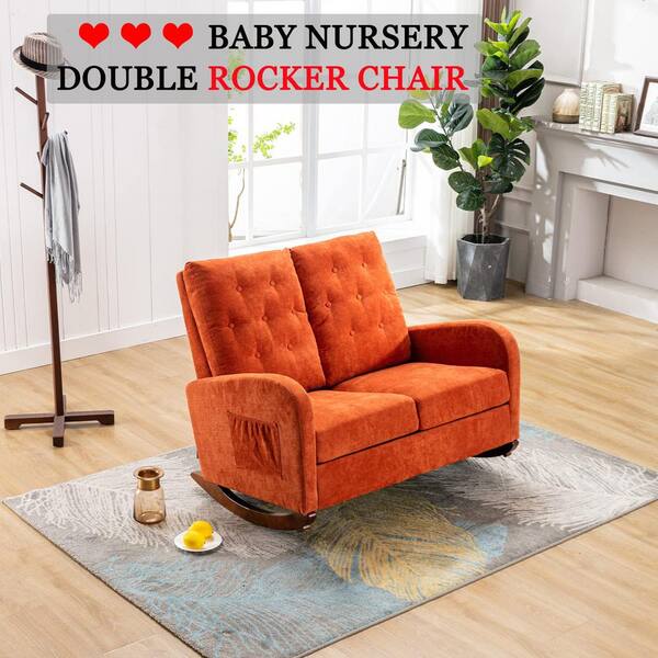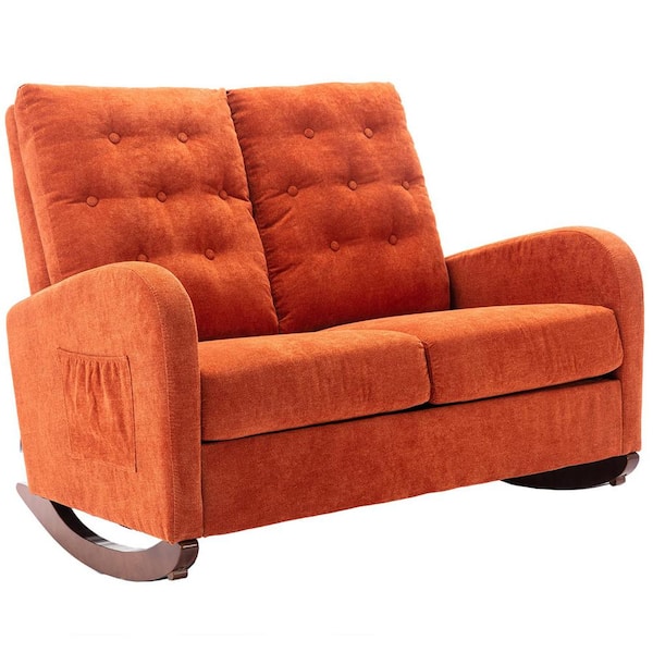 Orange Polyester Fabric Loveseat Rocking for Living Room, Bedroom
