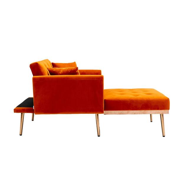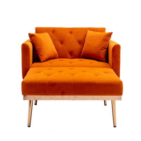 Orange Velvet Chaise Lounge Chair with Golden Metal Legs