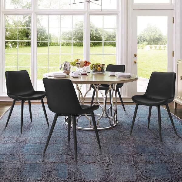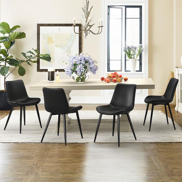 18 in.Black Low Back Metal Frame Dining Chair Cushioned Counter Bar Stool with Faux Leather Seat Set of 4