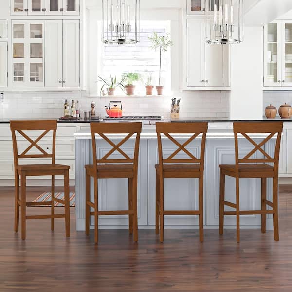 24 in. Light Walnut Wood Bar Stool, Counter Chair (Set of 2)