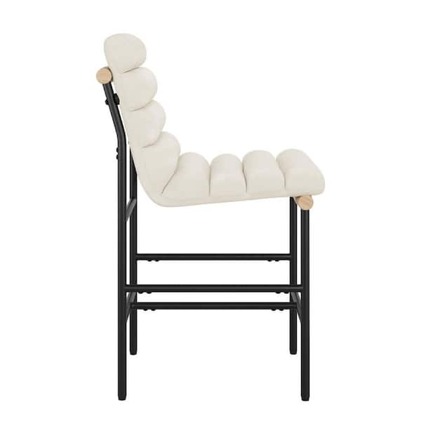 26" Beige Fabric Upholstered Armless Counter Height Bar Stools Black Metal Legs Stool w/ Tufted Back & Cushion Set of 6