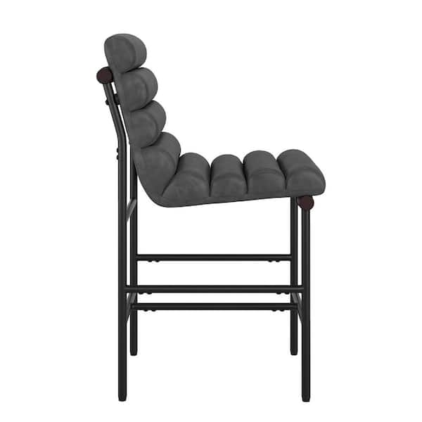 26 in. Black Faux Leather Upholstered Counter Height Bar Stool Metal Legs Counter Stools w/ Wave Back&Cushion (Set of 3)