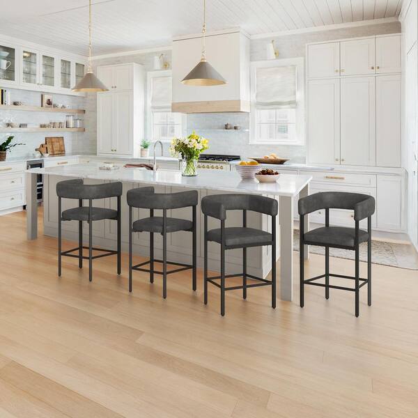 26 in. Black Gray Faux Leather Metal Frame Bar Chair Wraparound Upholstered Counter Height Bar Stools (Set of 4)
