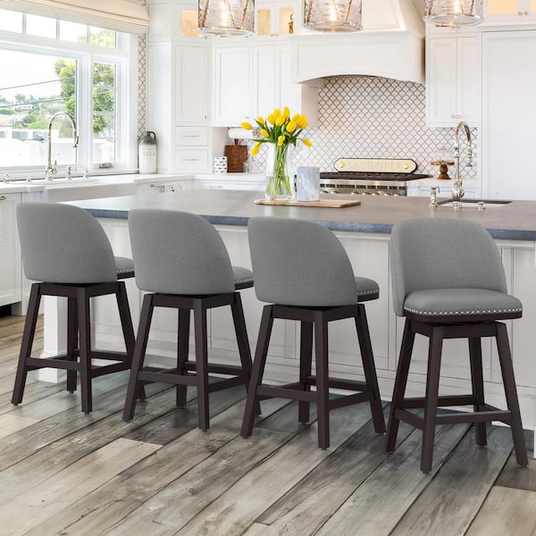 26 in. Gray Wood Frame Fabric Swivel Cushioned Bar Stool, Swivel Counter Stool (Set of 2)