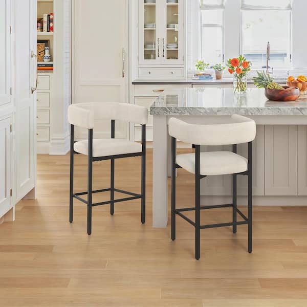 26 in. Linen Fabric Metal Frame Bar Chair Wraparound Upholstered Counter Height Bar Stools (Set of 2)