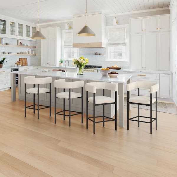 26 in. Linen Faux Leather Metal Frame Bar Chair Wraparound Upholstered Counter Height Bar Stools (Set of 4)