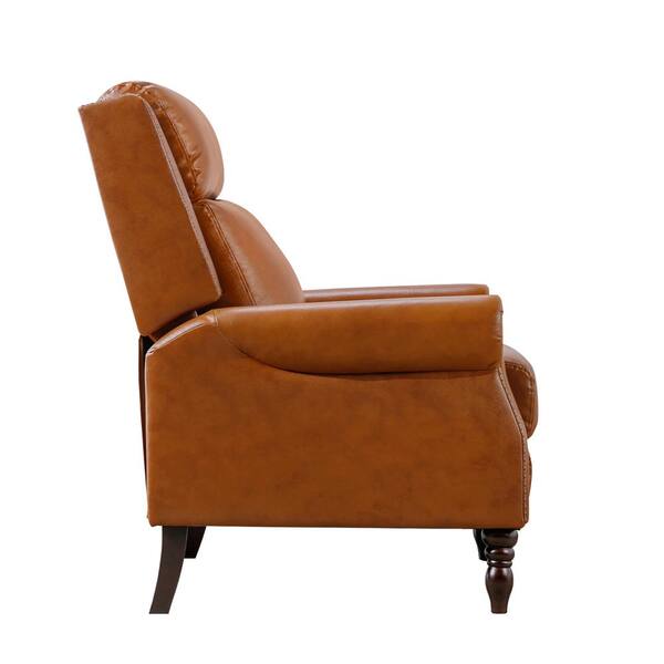 30 in. Brown Modern Genuine Leather Recliner Nailhead Trim Adjustable Push Back Recliner with Solid Wooden Legs