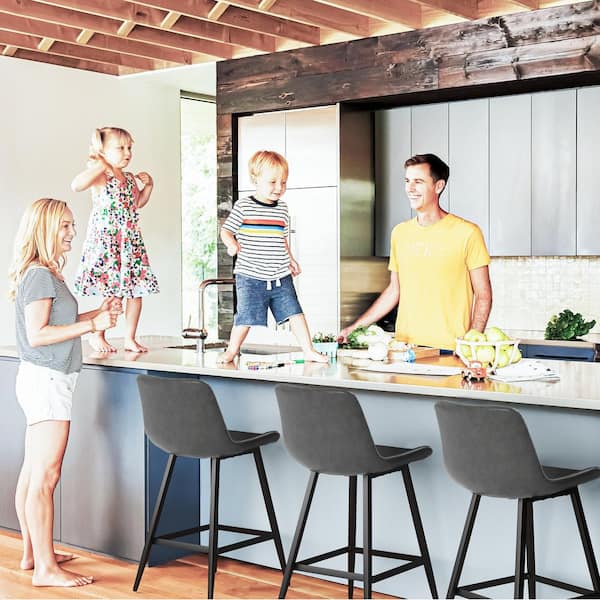 35 in. Gray 24 in. Low Back Metal Frame Cushioned Counter Height Bar Stool with Faux Leather Seat Set of 3
