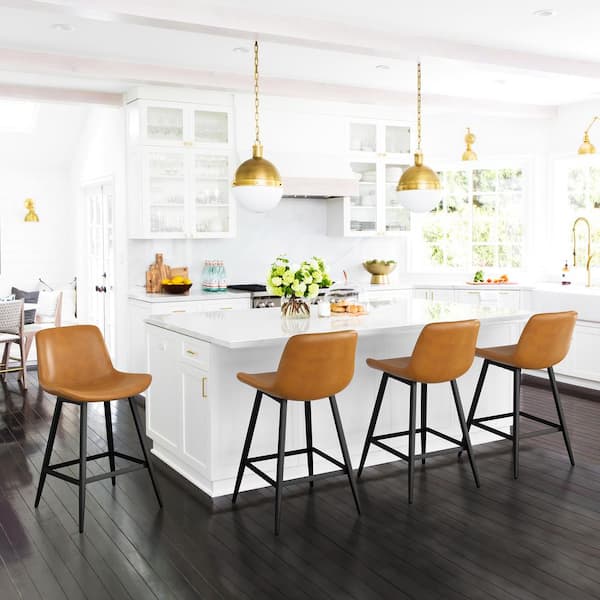 35 in. Whiskey Brown 24 in. Low Back Metal Frame Counter Height Bar Stool with Faux Leather Seat (Set of 2)