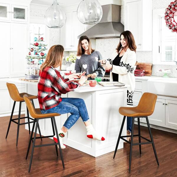 41 in. Whiskey Brown 30 in. H Low Back Metal Frame Cushioned Counter Height Bar Stool with Faux Leather seat (Set of 4)