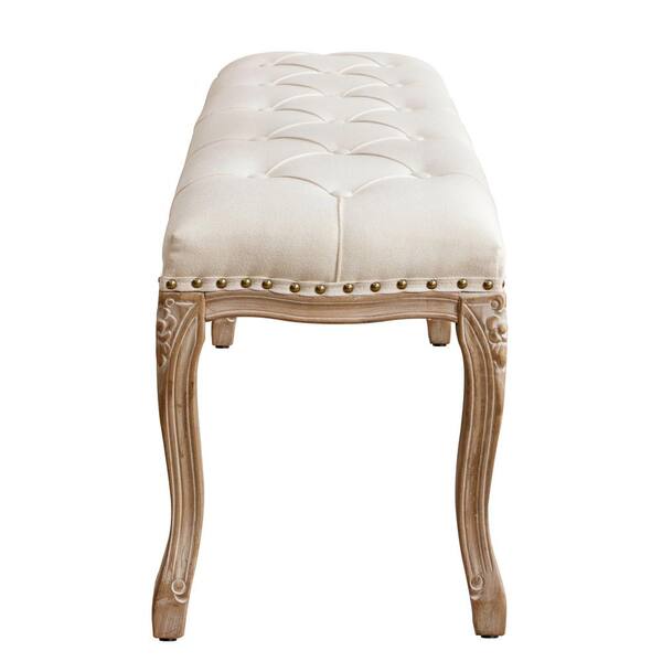 45 in. Beige Solid Wood Upholstered Vintage Entryway Bench Bedroom Bench Ottoman Tufted End of Bed Bench for Living Room