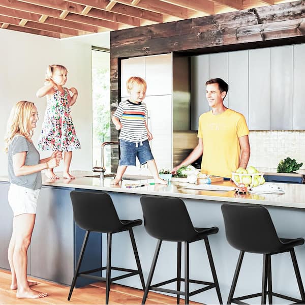 Abraham 24 in.Black Metal Counter Height Bar Stool Faux Leather Bucket Bar stool with Back Counter Stool Set of 2