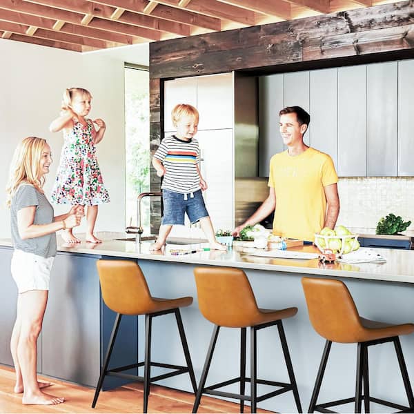 Abraham 24 in. Whiskey Brown Metal Counter Height Bar Stool Faux Leather Bar stool with Back Counter Stool (Set of 3)