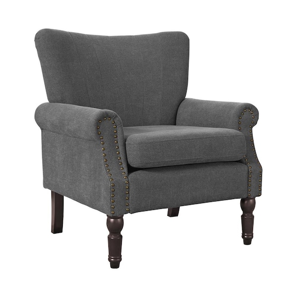 Anaya Gray Fabric Upholstered Wingback Accent Chair Rolled Arm Nailhead Living Room Chair Set of 2