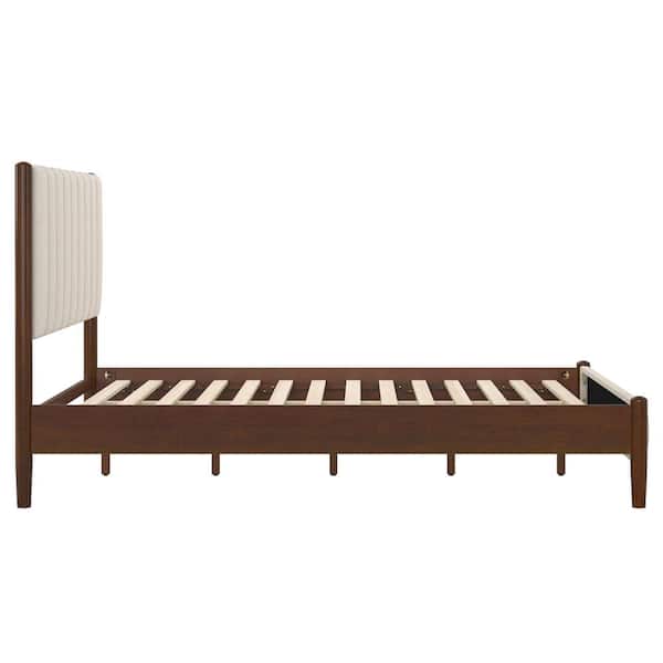 Berger Upholstered Bed Dark Brown Walnut Solid Wood Frame Queen Size Platform Bed with Headboard