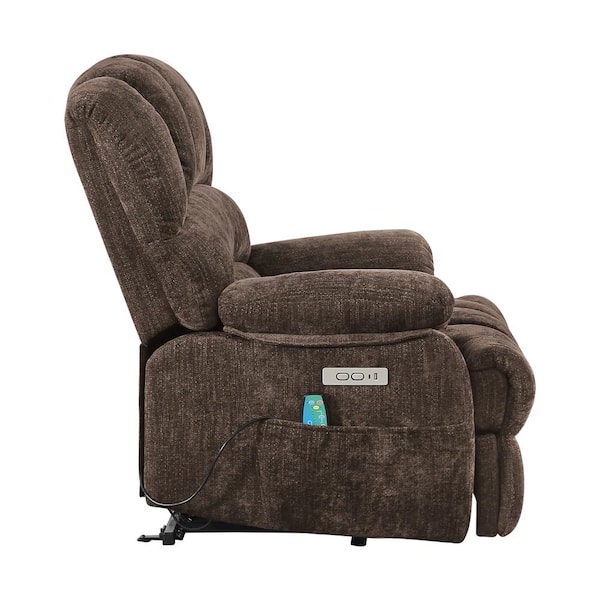 Dark Brown Polyester Power Lift Recliner Chair for Elderly Electric Assist Lift Chair with Massage & Heat Set of 2