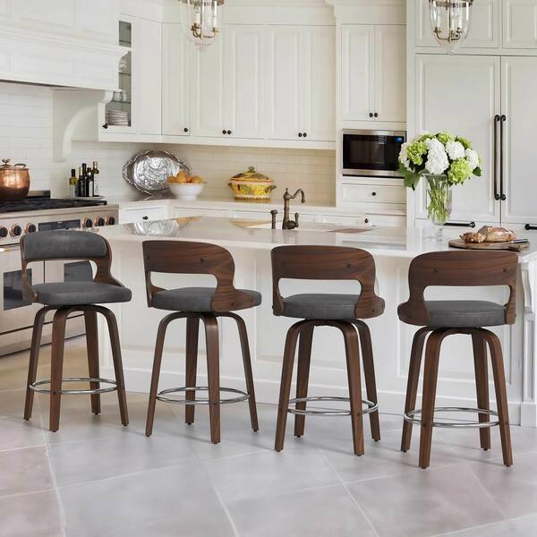 Edwards 26 in.Modern Gray Faux Leather Swivel Bar Stool with Solid Walnut Wood Frame Bentwood Counter Stool Set of 4