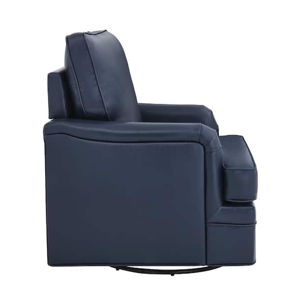 Fabry Navy Mid-Century Genuine Leather Swivel Accent Chair Modern Armchair Upholstered Barrel Chair with Metal Base
