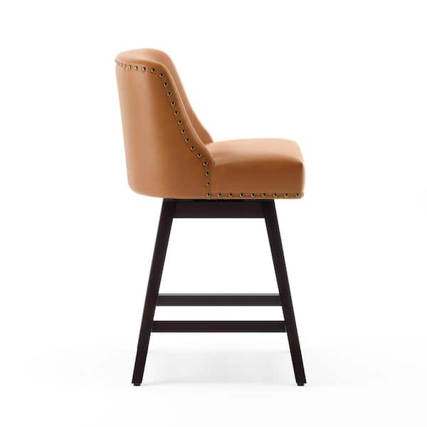 Hampton 26 in. Solid Wood Brown Swivel Bar Stools with Back Faux Leather Upholstered Counter Bar stool Set of 2