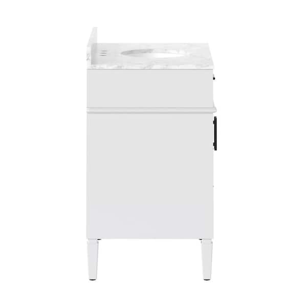 Hampton 36 in. W x 21.5 in. D x 35 in. H Single Sink Freestanding Bath Vanity in White with White Carrara Marble Top