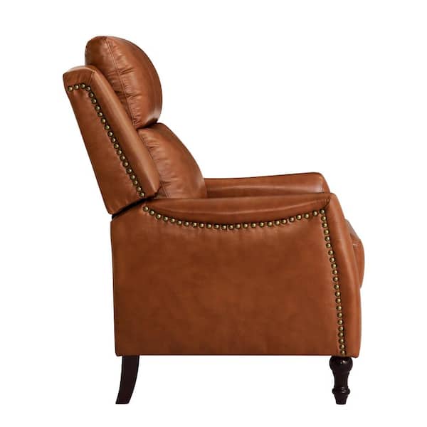 Hania Camel Genuine Leather Recliner Chair Arm Chair with Rivets and Retractable Footrest