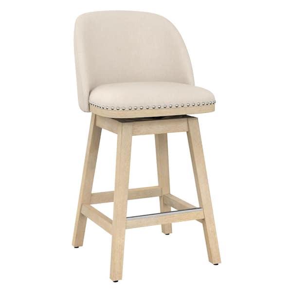 Meliodas 26 in. Linen Fabric Upholstered Solid Wood Brushed Leg Counter Height Swivel Barstool Set of 2