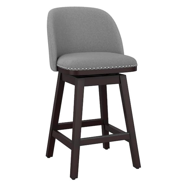 Meliodas 26 in. Medium Gray Fabric Upholstered Dark Brown Solid Wood Leg Counter Height Swivel Barstool Set of 2