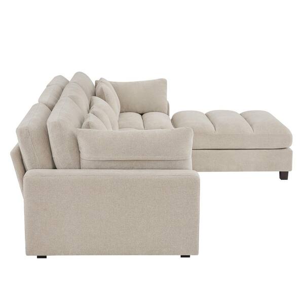 Panner 128 in. Square Arms 4-Piece L-Shape Chenille Sectional Sofa Couch in Light Camel with Moveable Ottoman
